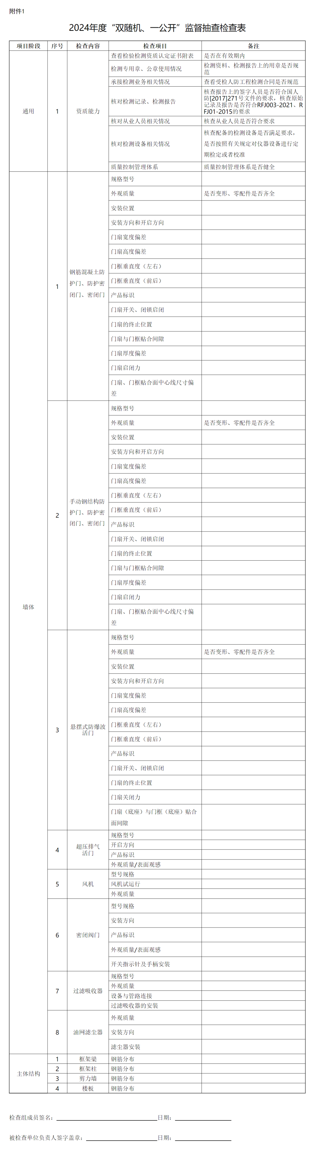 根据国家、自治区的有关要求,为进一步强化全区人防工程建设质量事后监管工作,规范人防工程建设管理行为,提升人防工程建设质量,自治区国防动员办公室、自治区住房城乡建设厅决定联合开展2024年度全区人防工程“双随机、一公开”监督检查。现将有关事项通知如下: