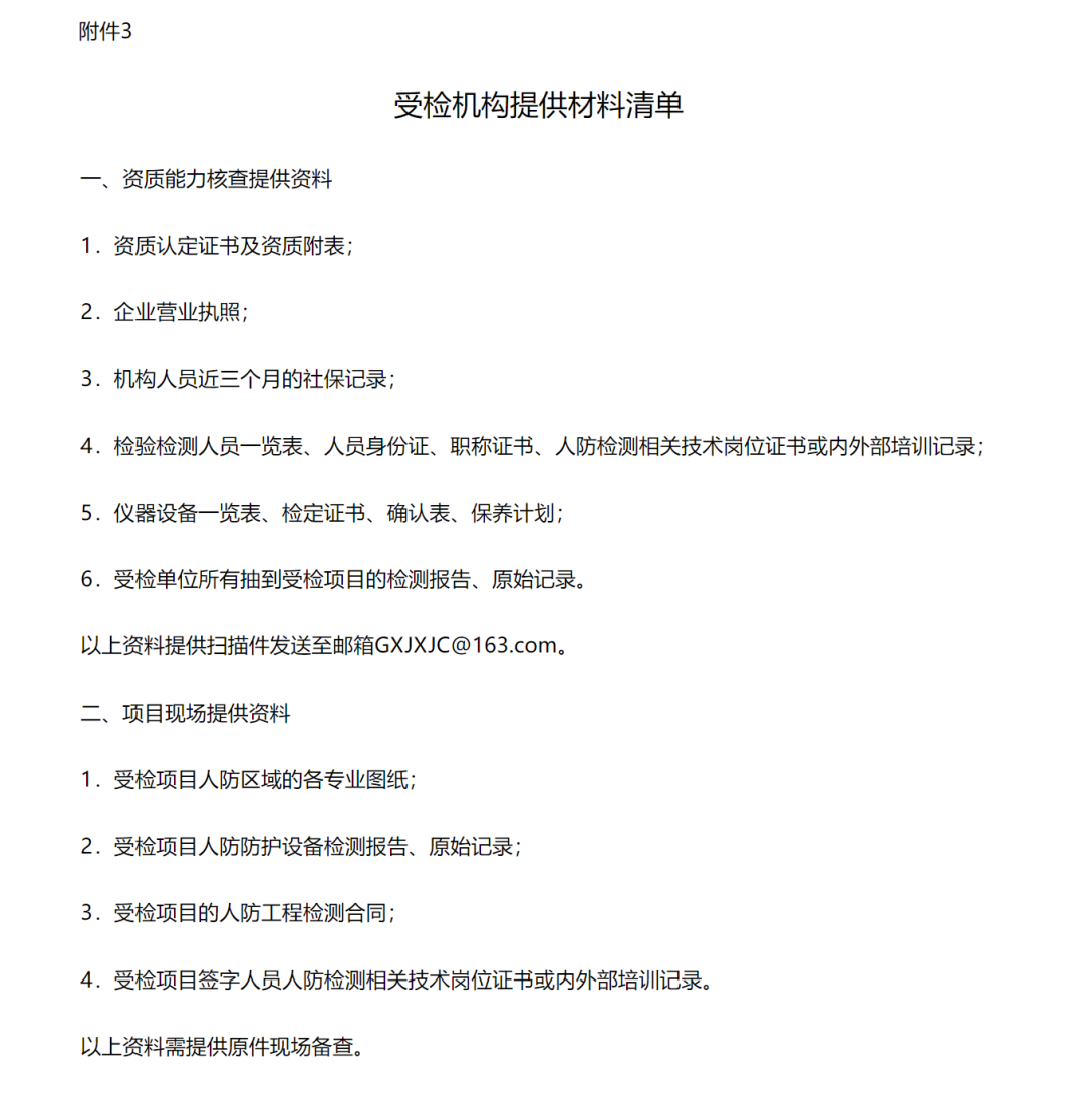 (一)高度重视,积极配合。各受检机构要高度重视此次“双随机、一公开”监督检查工作,自觉接受行业主管部门的监督检查。按照检查要求,明确分工、认真准备,积极配合检查组工作。请受检机构提前做好受检项目现场协调对接,确保检查组顺利开展复检复测。需要提前提供的材料台账,请受检机构按时提供(具体时间另行明确,需提供的材料清单详见附件3)。